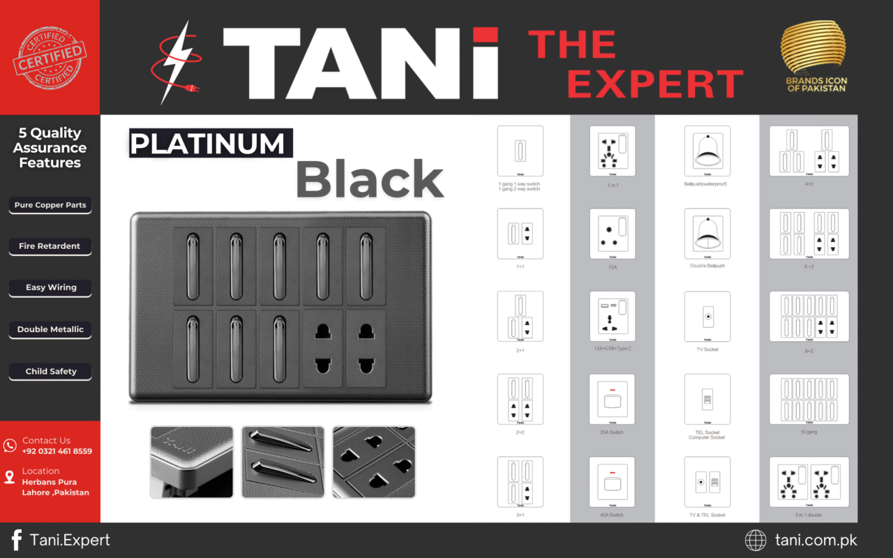 TANI SILK BLACK SERIES 8 SWITCHES + 2 SOCKETS