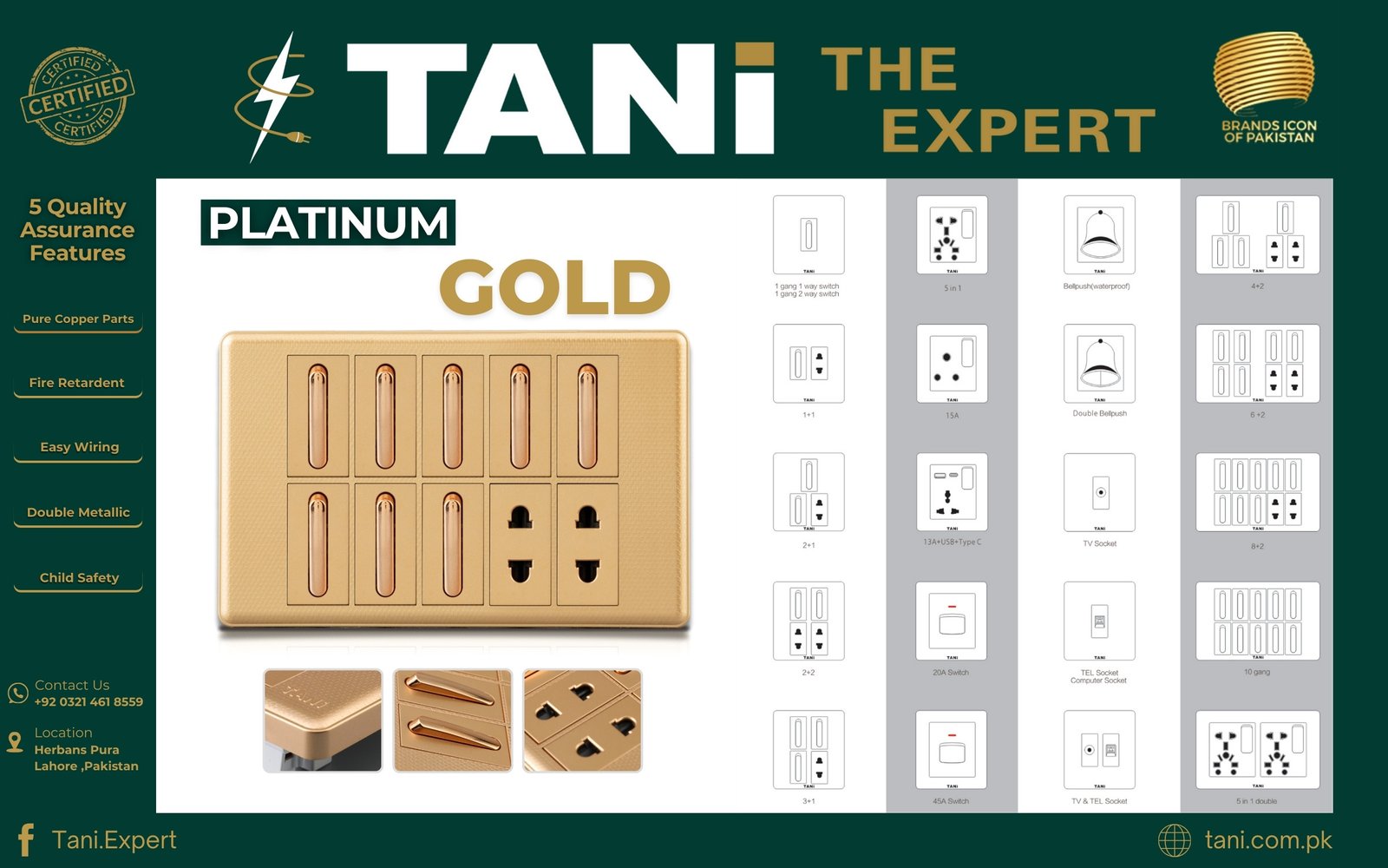 TANI JADE GOLD SERIES 8 SWITCHES + 2 SOCKETS